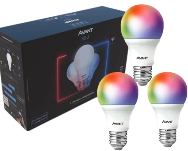 Kit 3 Lâmpadas de Led Avant Inteligente Smart RGB 10w Caixa 3 unidades Wi-Fi